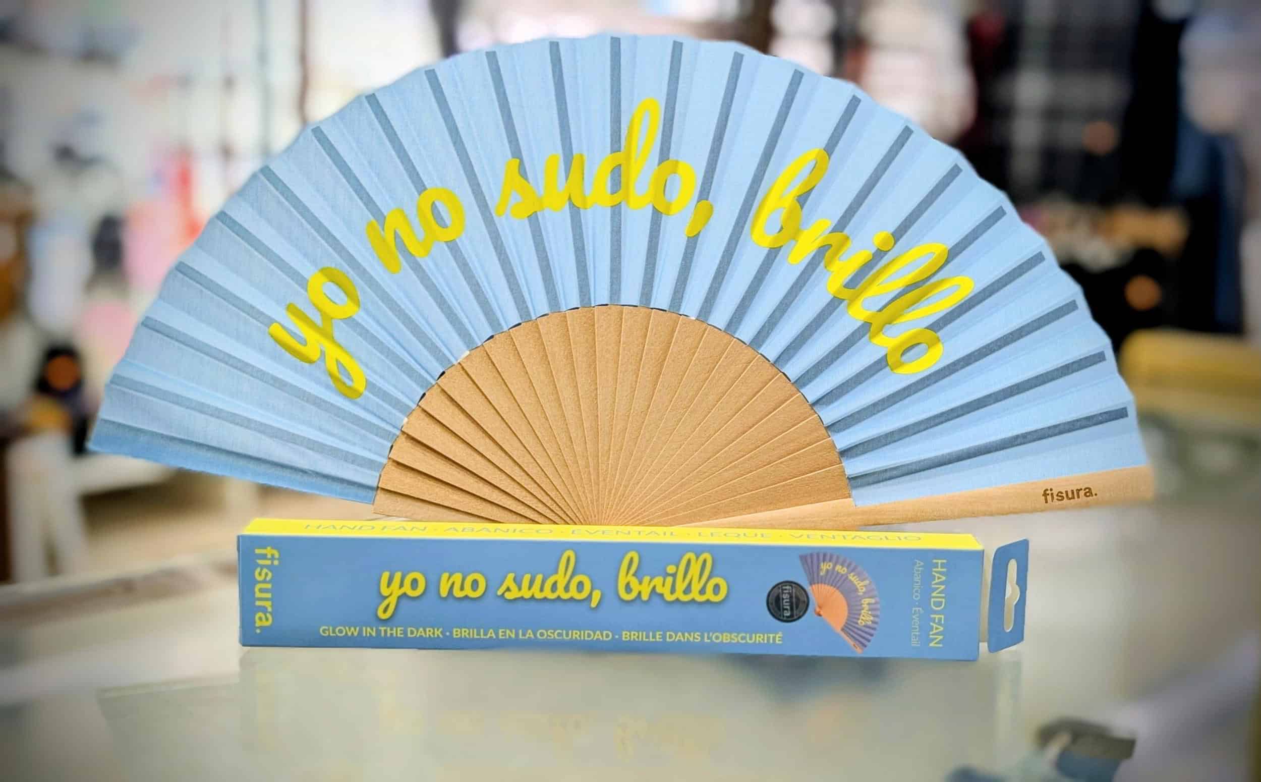 Yo no Sudo, Yo brillo: ¡Cuestión de actitud! El abanico definitivo para las noches de verano, ya que sus letras brillan en la oscuridad. Serás el centro de todas las miradas.